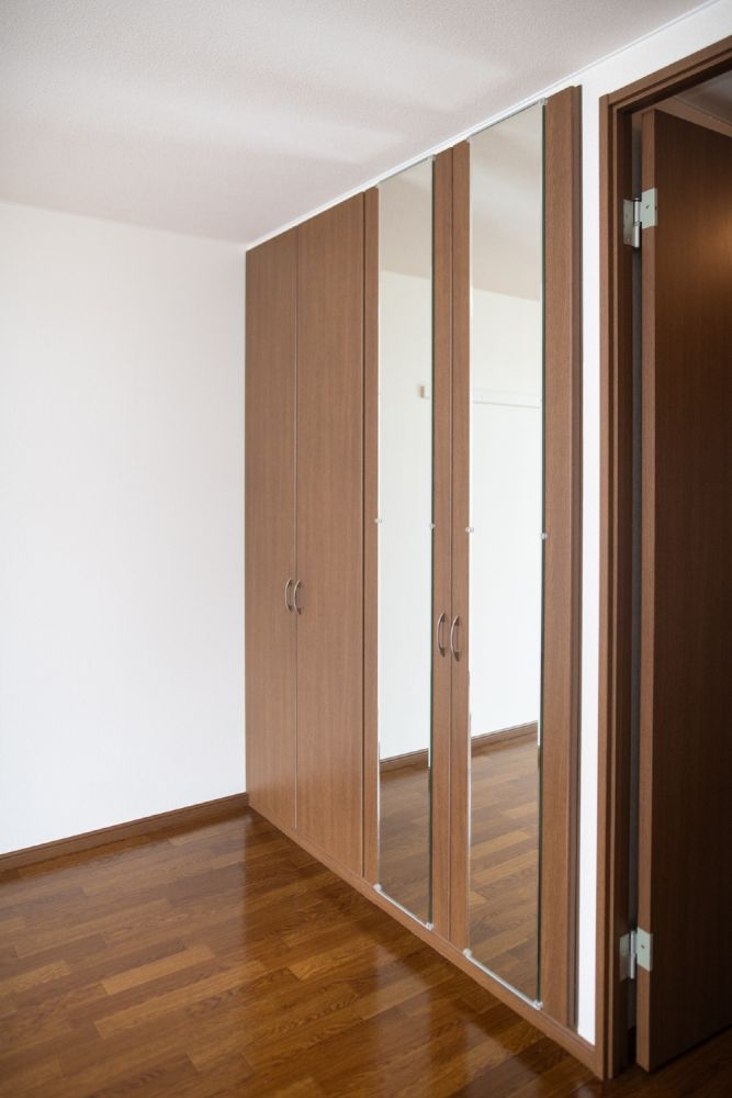 広めの居室には、エアコンと多きめの収納が付いています。バルコニーもあって、空気の入れかえも出来ます。