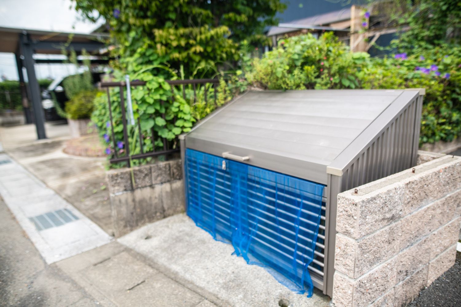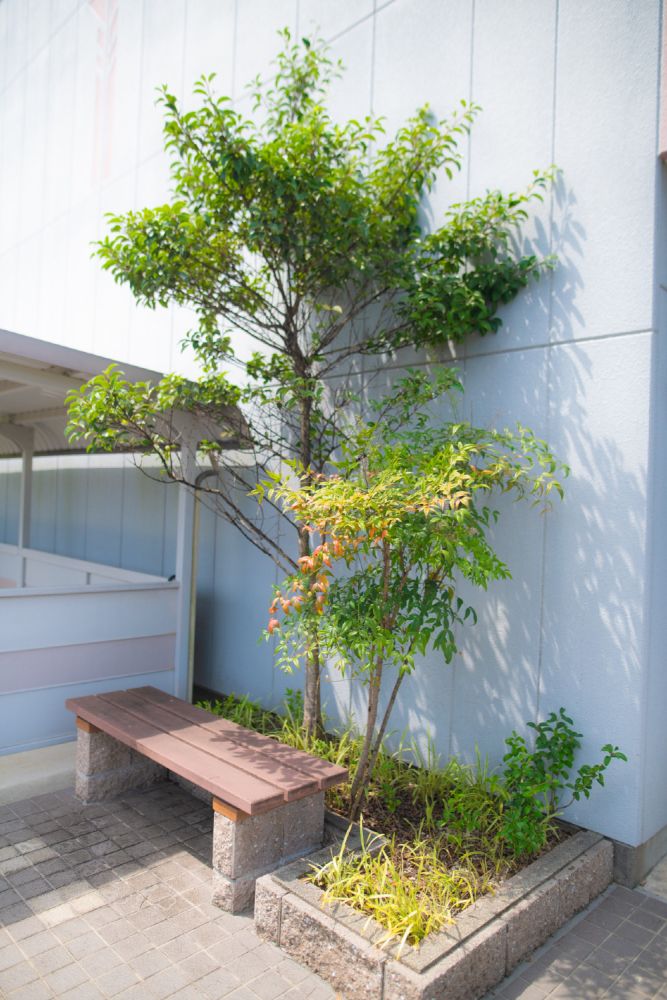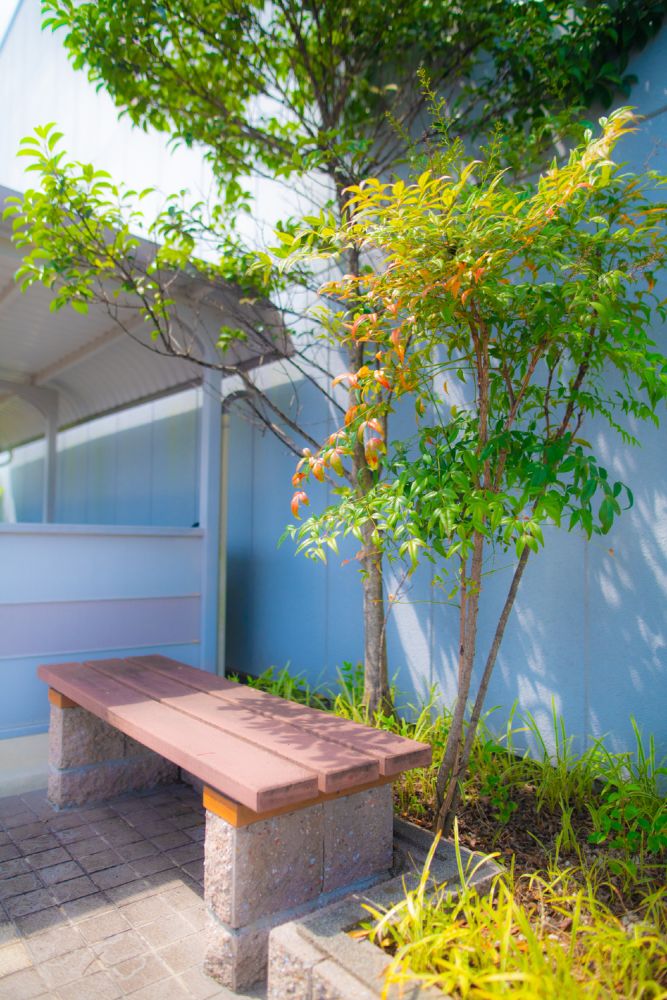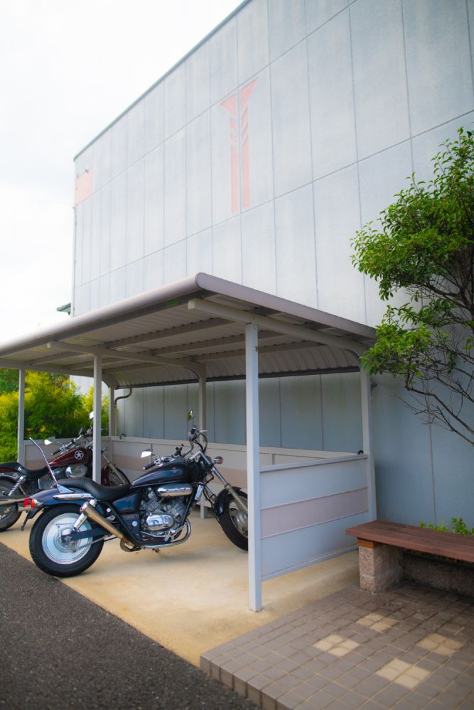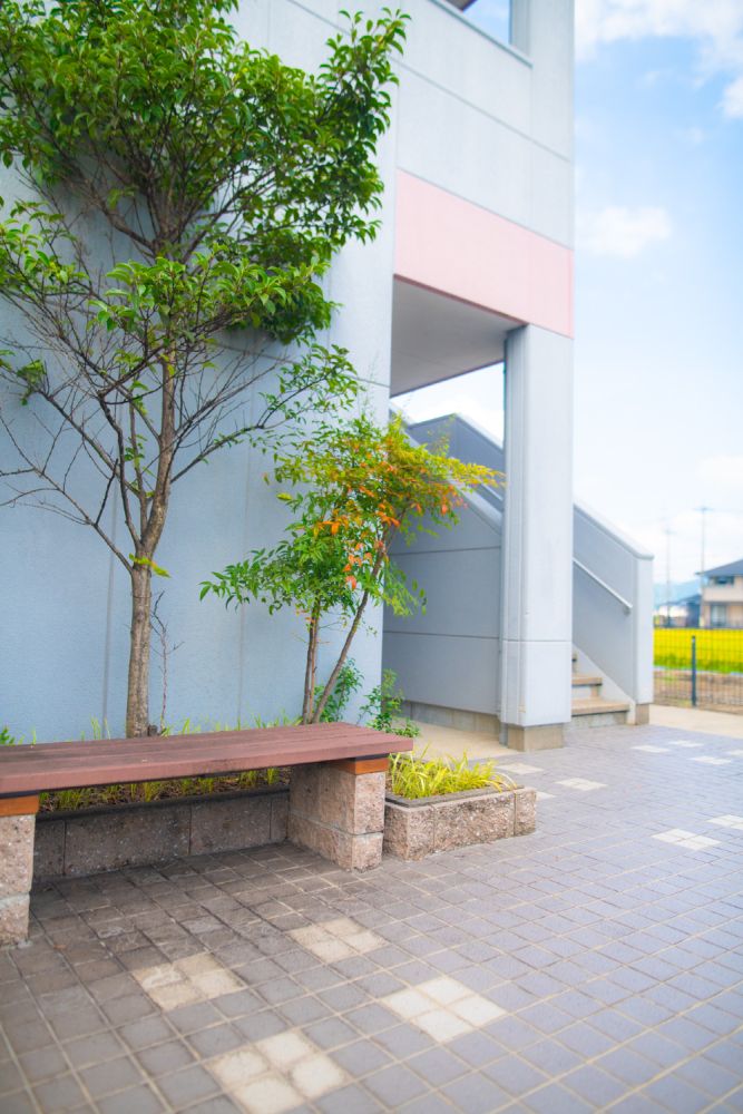 自転車・バイク置き場やゴミ集積所、ベンチ、植栽など整えられています。
