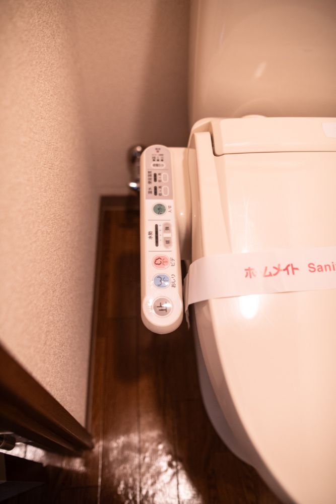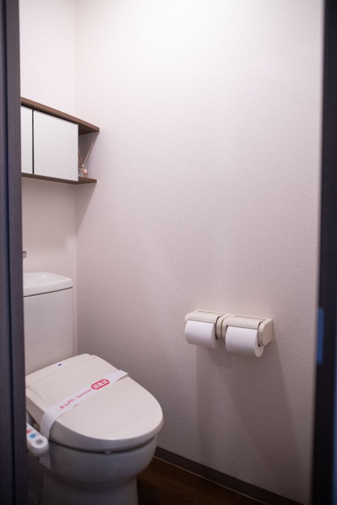 温水洗浄便座や簡易収納のついた綺麗なトイレです。